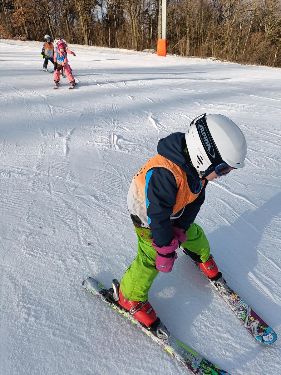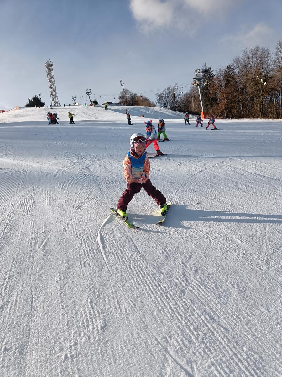- Skupinová výuka (4-7 dětí/instruktor, začínající lyžaři po 4, zkušení lyžaři, kteří zvládají jezdit v obloucích za instruktorem max. po 7).